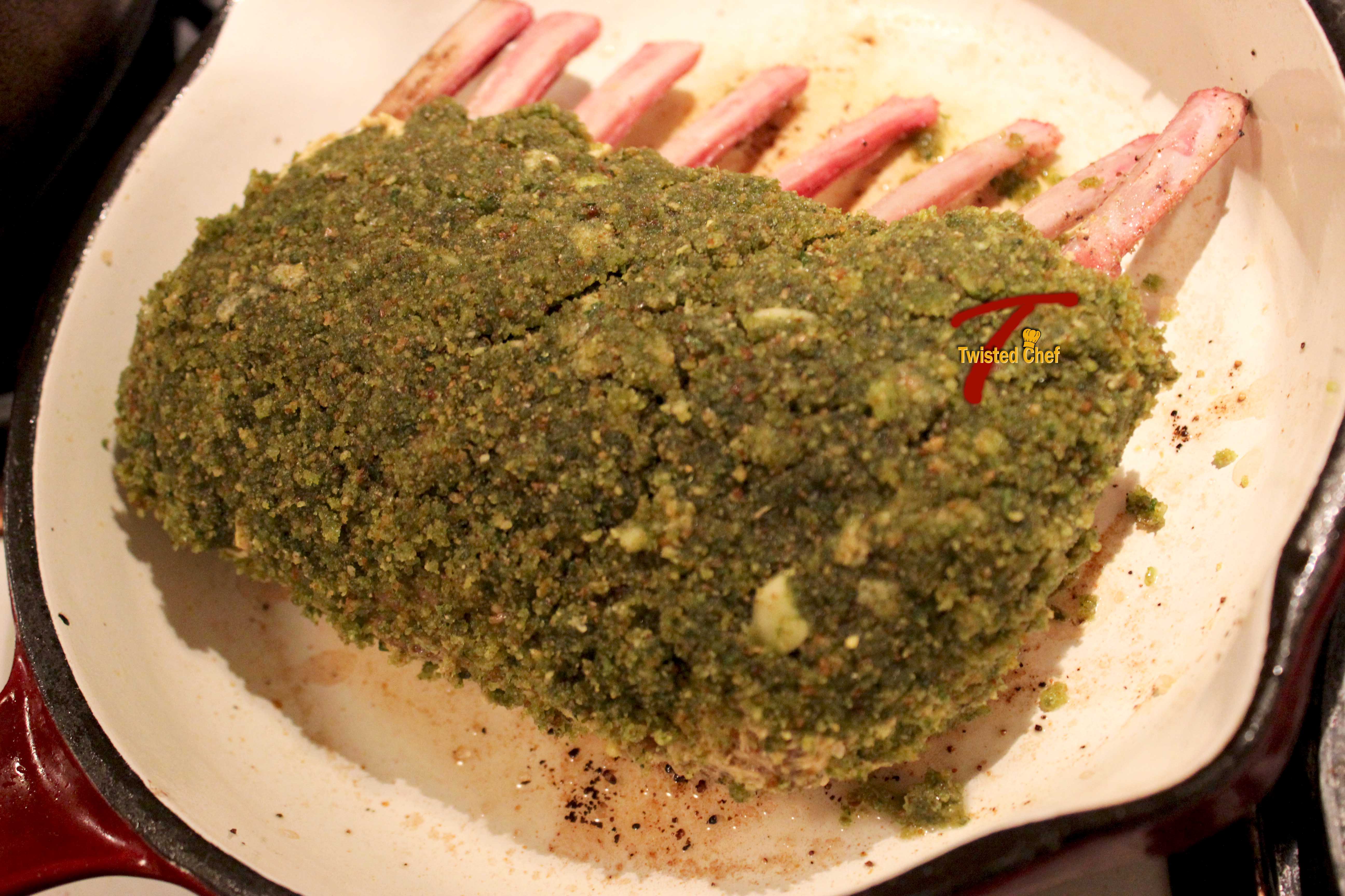 Original recipe by Chef Michael Smith can be found here: Herb Crusted Rack of Lamb.