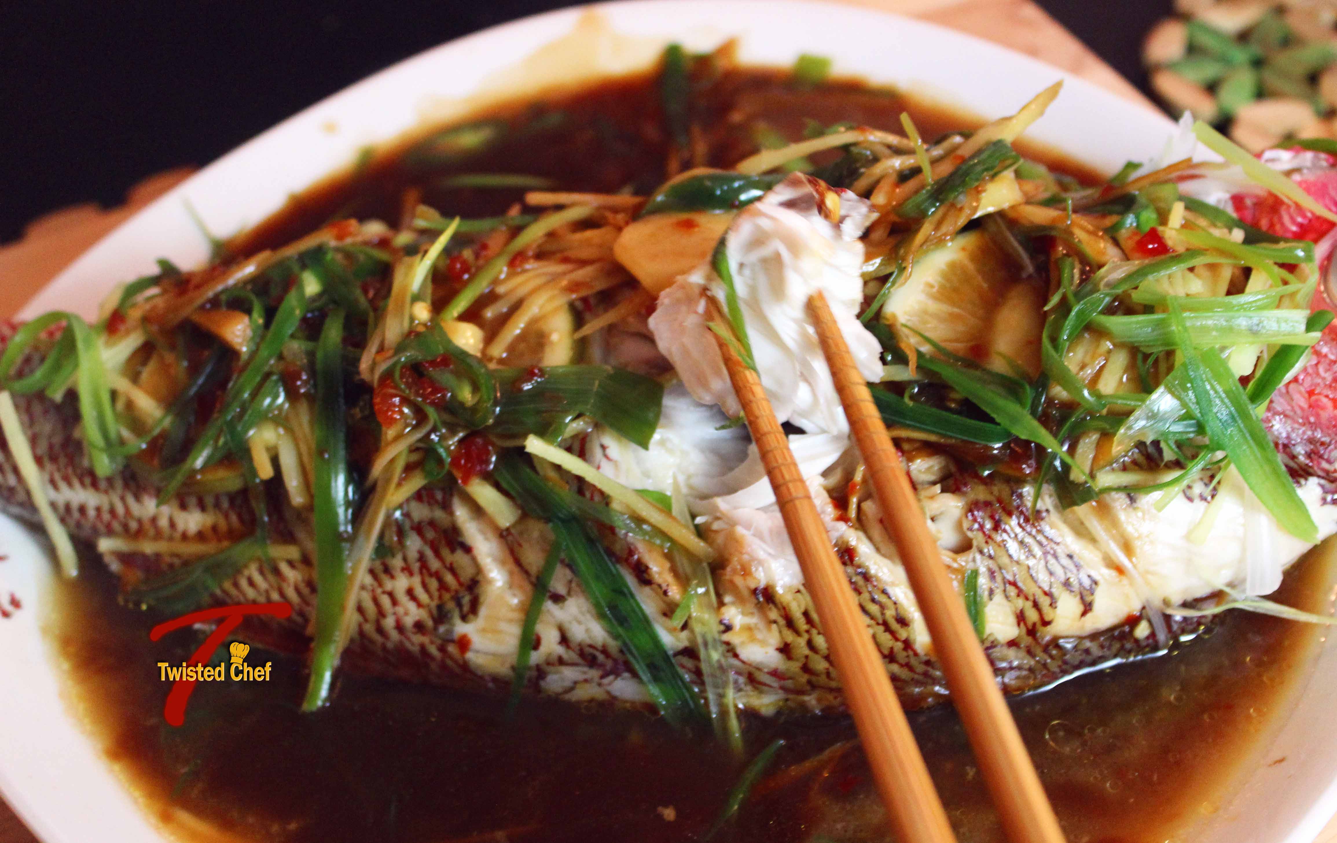 This summer, we visited New York City and of course we had to eat while we were there. We decided on a Chinese restaurant in China Town. Since my family is a big fish lover (except for my husband and nephew), we ordered this steamed whole fish that was just simple divine! We loved it so much that we ordered a second one. When I got back, I just couldn’t forget about this wonderful dish. So I did some research and decided to do some experiments. This was the result! My brother-in-law who has just moved here after spending 6 years in China, said it was pretty close to what he used to have there and that definitely put a smile on my face 🙂